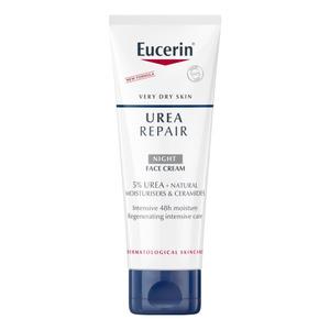 Eucerin UreaRepair Night Face Cream 5 Urea giver intens fugt og reparerer meget tør hud i ansigtet Eucerin UreaRepair Night Face Cream 5 Urea er en natcreme uden tilsat parfume til meget tør¸ Stram og skællende hud i ansigtet¸ Cremen indeholder 5 urea¸